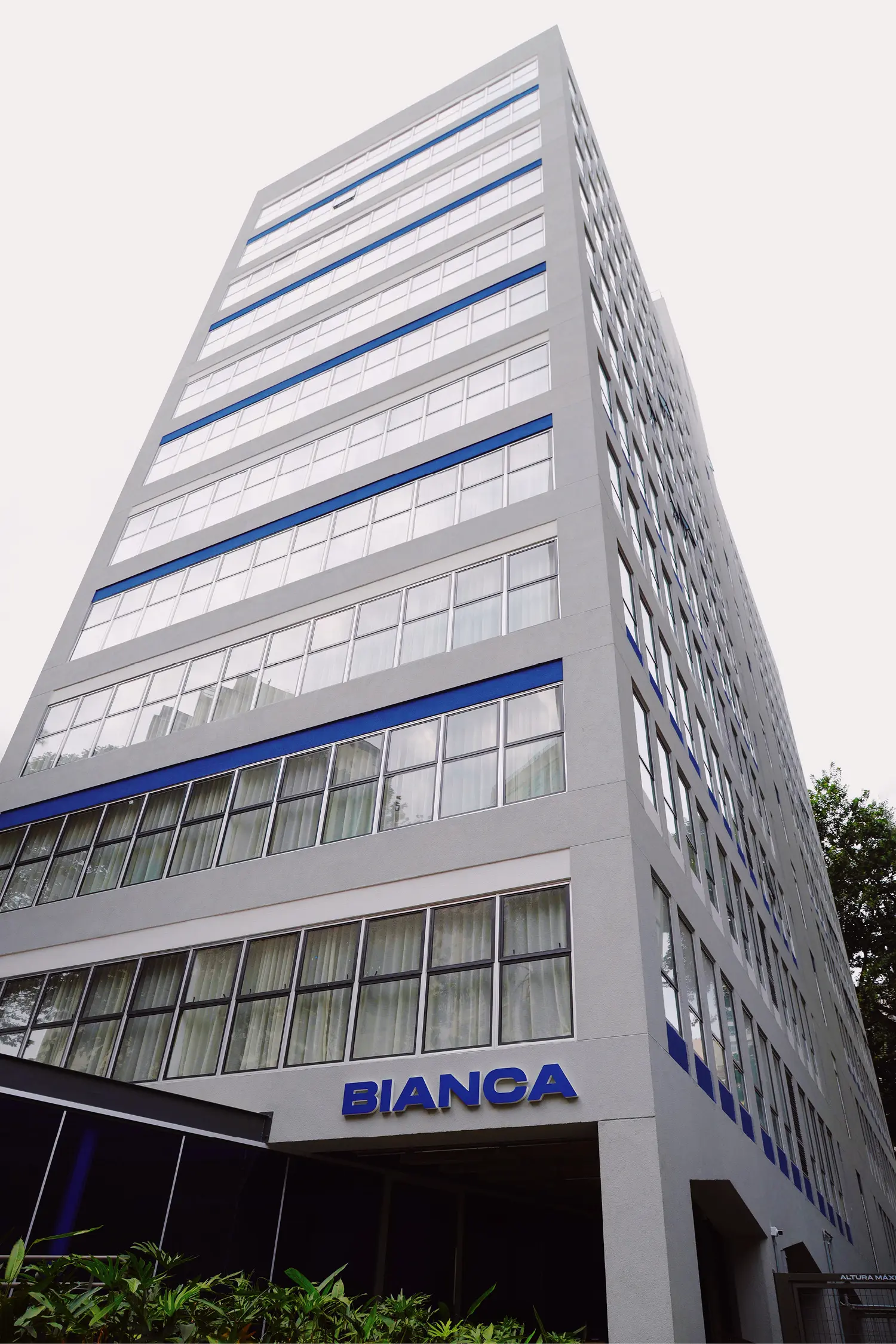 Projeto de identidade visual e sinalização para o edifício Bianca. Para esse projeto, desenvolvemos em parceria com Estúdio Lodi, luminárias que foram usadas em toda a sinalização e que, em breve, serão colocadas a venda pelo Objeto Azul.