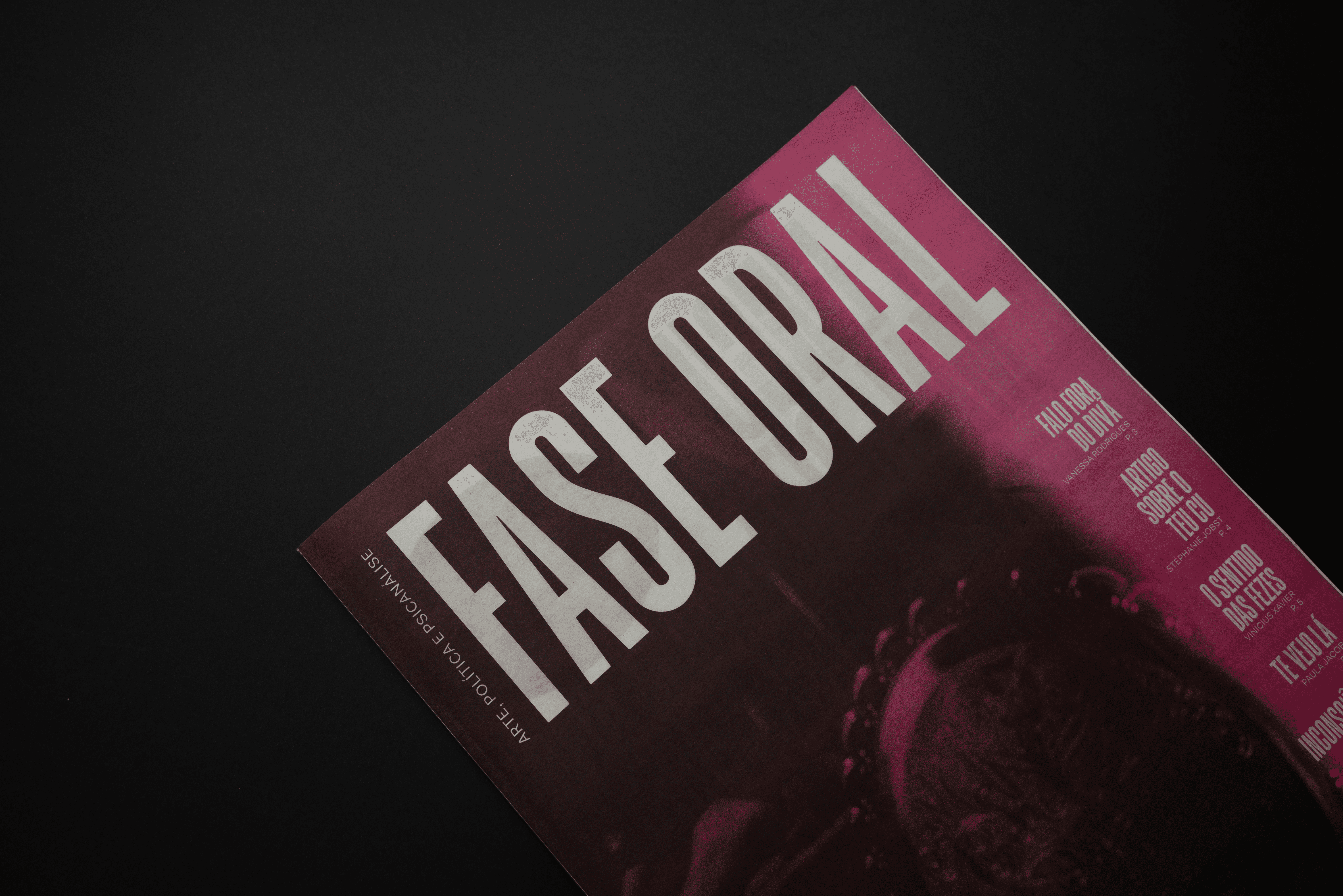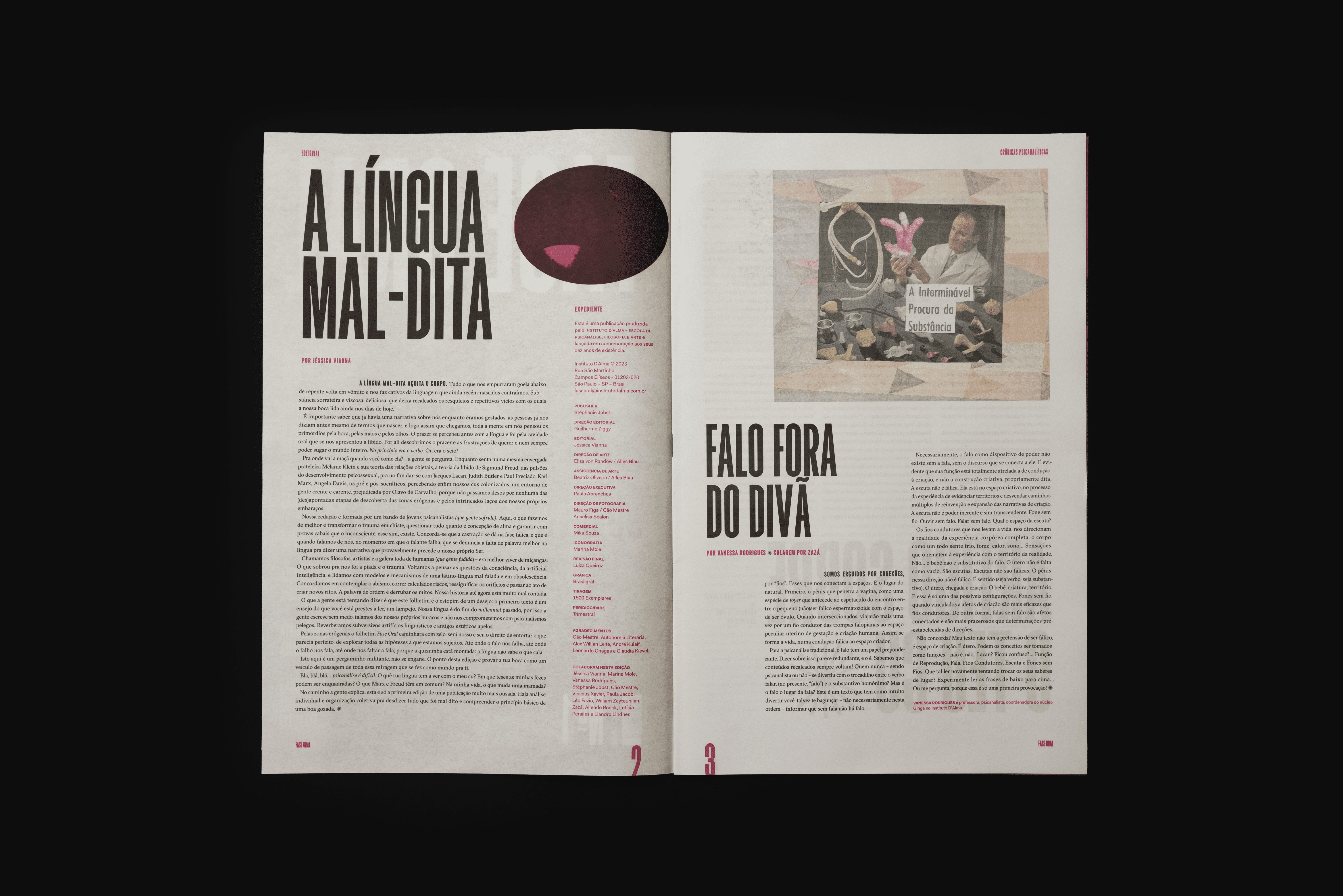 Projeto gráfico a Fase Oral, um jornal de arte, política e psicanálise desenvolvido para o Instituto D'Alma.